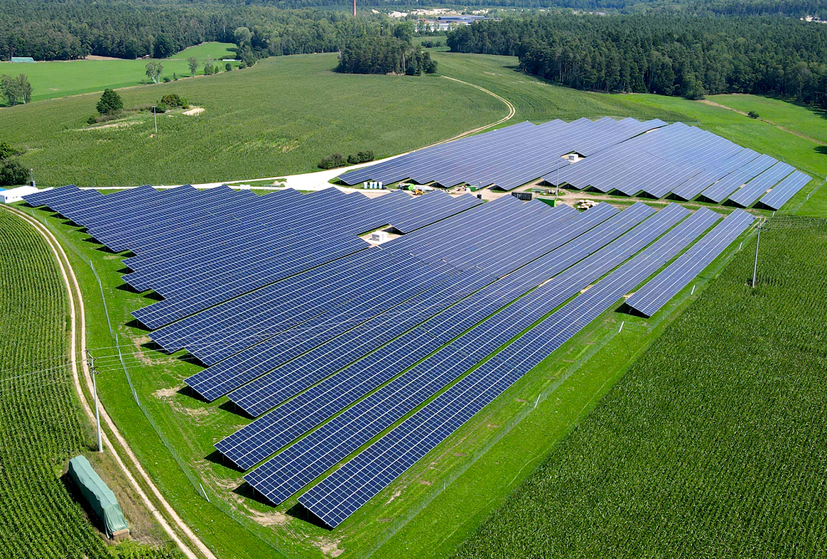 Solarpark Wenzenbach erfolgreich in Betrieb genommen: 7.400 Module liefern 4,0 MWp, 4,5 Mio. kWh/Jahr. Schafbeweidung ab 2024 geplant.